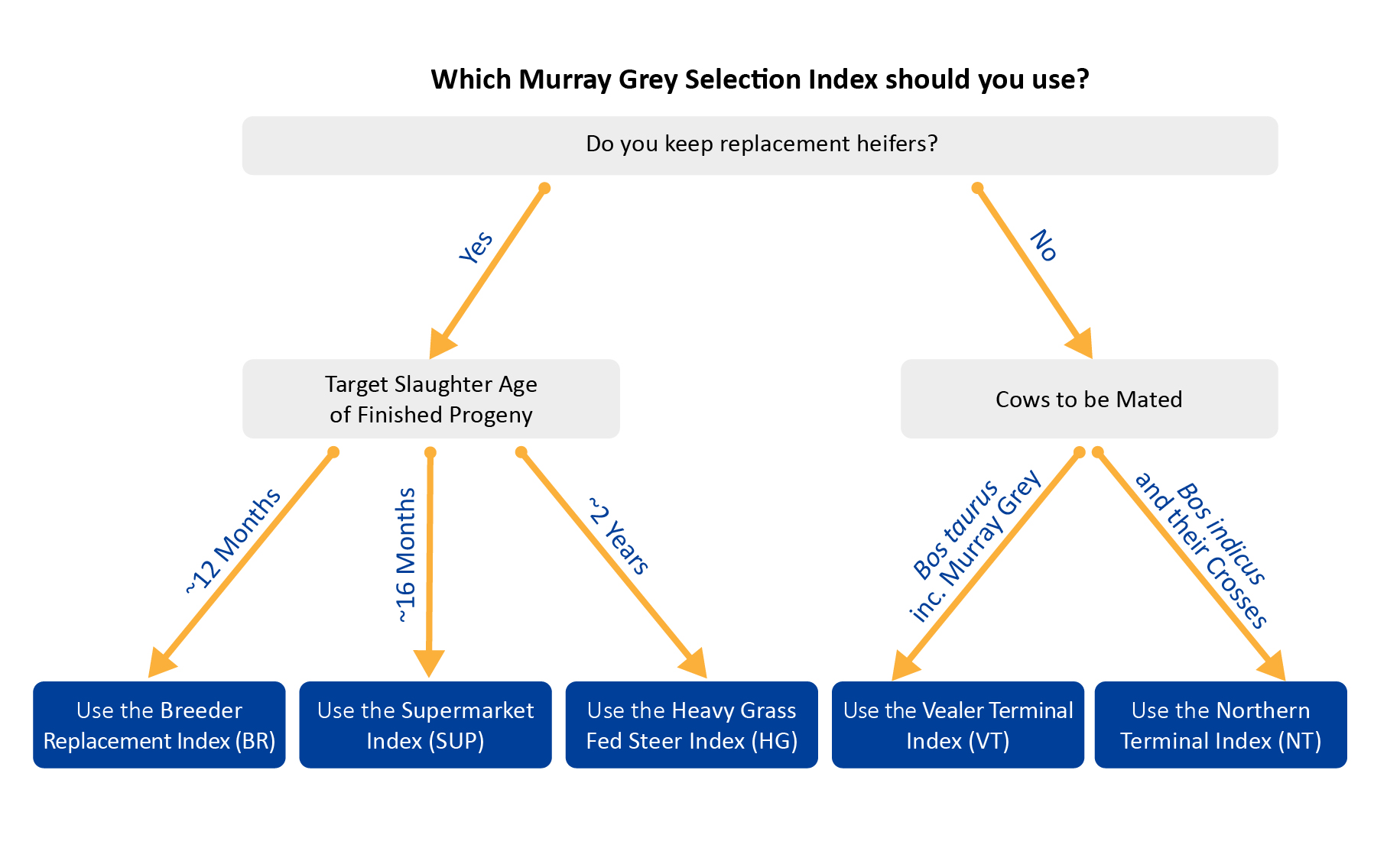 The Murray Grey Beef Cattle Society currently reports five different selection indexes. These are the: